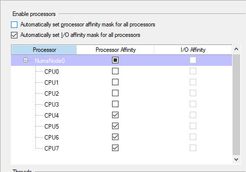 SET PROCESS AFFINITY CPU = 4 TO 7;