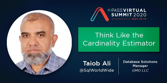 My session is about ‘Think Like the Cardinality Estimator” on Wednesday, November 11th, at 2 pm EST.